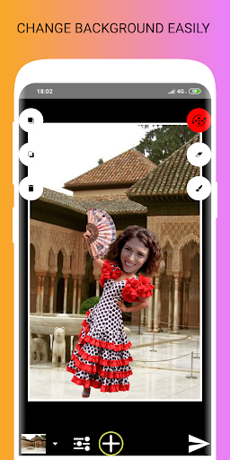 FusionCam is an auto background changer camera with a photo editor tool for creating personal WhatsApp stickers, wonderful memes with its photomontage editor.