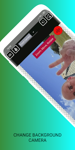 Selfie Fusion Cam is a free real time photo background changer and has an online pixabay photo search engine with thousands of different backgrounds such as famous buildings, monuments, beaches, mountains, animals, sunsets... You can also put any image from your gallery as a background. You can also remove the background of the camera without replacing it with anything else storing it later in PNG format.