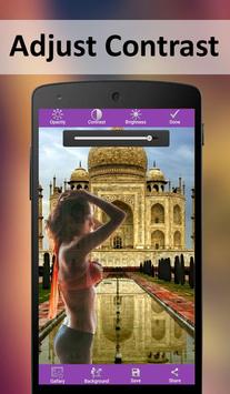 - Opacity, Brightness and contrast tool to adjust and suit your photo with the new background.