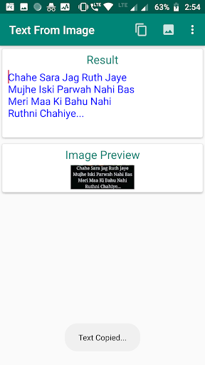 "Text From Image" lets you quickly scan any kind of documents in your office, images, bills, receipts, books, magazines, class notes and anything that needs to be there in your device within no time. This is the fastest means to get the scanned document in the highest quality and convert it immediately into PDF or JPEG format so that you can share the scanned document, image, books, bills, important notes or any kind of paper that you can think of.
