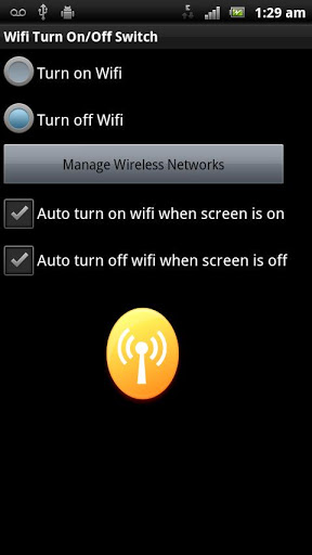 Wifi On Off Switch conserves your phone battery by allowing you to turn off Wifi when your phone is in Standby mode, when there's no Wifi network available, or when you're done using wireless network. This simple app provide a quick and convenient way to turn on off Wifi.