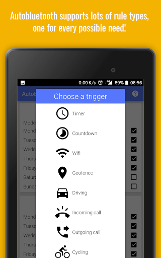 AutoBluetooth turns bluetooth on or off without any user interaction, based on the rules that the user set.