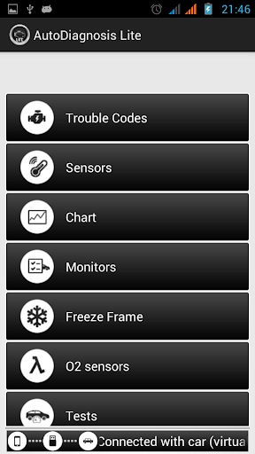 AutoDiagnosis is an OBD2 performance and diagnostic tool for any device that runs the Android operating system. It allows to view and clear the trouble codes, it gives access to the current parameters which are read from the sensors in the vehicle and much more. Not all the vehicles have the same sensors, therefore there is a possibility that