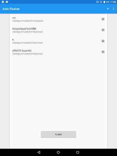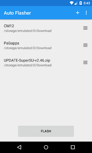 Auto Flasher lets you flash several ROM files (kernels, tweaks, themes, mods etc..) automatically, based on file name patterns without having you to dig through your recovery for files in different folders.