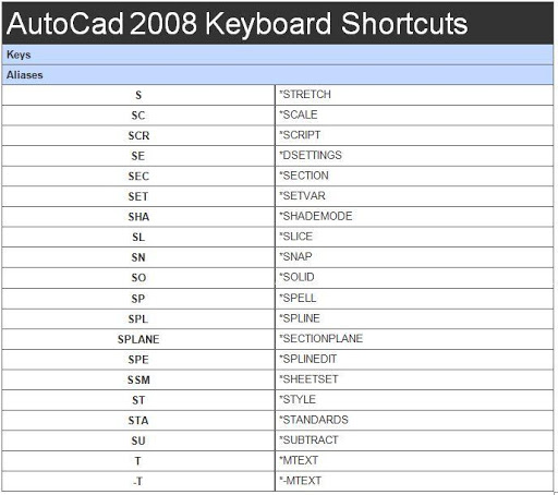 - autocad 2008 shortcut keys