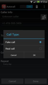 This is the free version which allows you to make fake calls. In app purchase required to unlock scheduling outgoing calls.