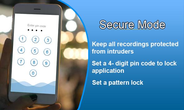 You can keep all recordings safe on your mobile phones from intruders by locking the application. You can lock all recordings by setting a pattern lock or setting a pin. This feature will allow you to access application only when you enter pin or pattern lock.