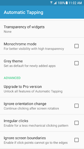 Automatic Tapping features a floating control panel for easy control of the automatic clicking. Have the panel automatically appear in your selected apps, and be hidden in all others. Conveniently select the location for the auto click via separate click point widgets. Set the clicking speed, number of clicks and click length directly from the control panel. The location of the clicks will be saved for each app, as also the selected click interval and number of clicks.