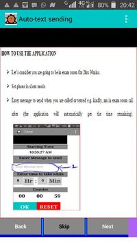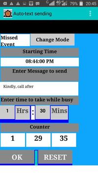 Ability to auto send a text message when the user receives a call or a text message and he or she is busy. A text box for typing text that you want to be sent to whoever is calling or texting.