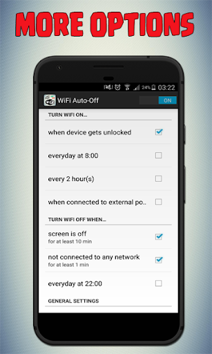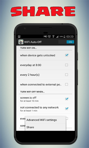 2- The app offers a lot of options when to turn On and when to turn Off the Wi-Fi. You can select the option which suits you better