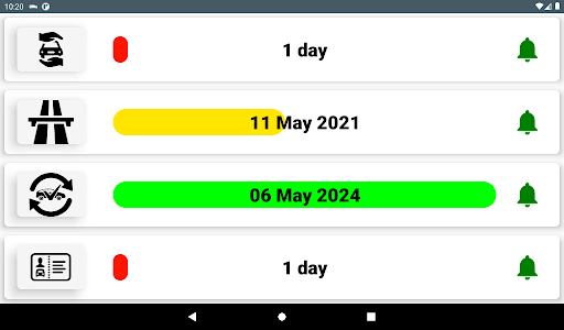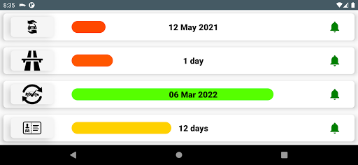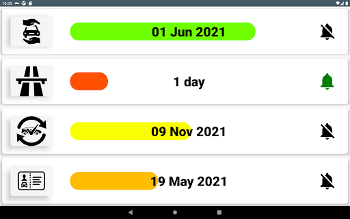 An Android car assistant that shows you the validity and reminds you of the expiry dates of: