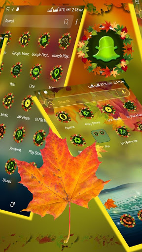 • Autumn Leaf Theme included many HD customized Icons of popular apps, social app like (Snapchat,imo,viber,twitter etc) System app icons.