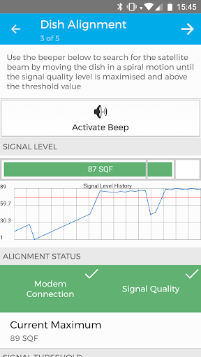 • Dish alignment – carry out fine alignment of the antenna over WiFi, using the built in beeper tool, without the need of a satellite meter.