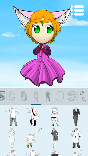 With this app, it only takes a few minutes to create a one-of-a-kind chibi character. Set your character’s gender, profession, and appearance. Add awesome accessories, name your anime character, and you're done! Save it to a gallery and share it with your social network friends or set it as your avatar. If you think our editor doesn’t have enough options, email your character to yourself and keep editing it on your computer.