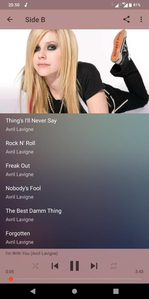 Aplikasi mp3 berisi lagu avril lavigne dengan kualitas suara yang sangat jernih bisa anda nikmati secara gratis tanpa kuota internet saat di putar