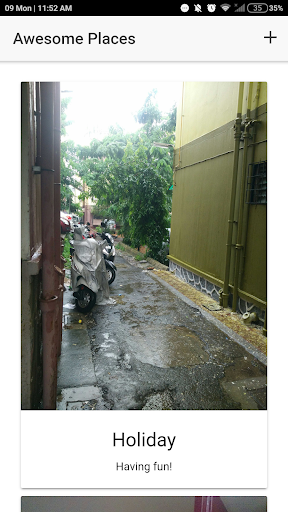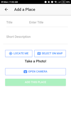 Capture your own awesome places and store it in the app. Here we can add our current location either by self-tracking or custom marking. And also we can take pictures of that beautiful place. And also we can share our place on social sites as well.