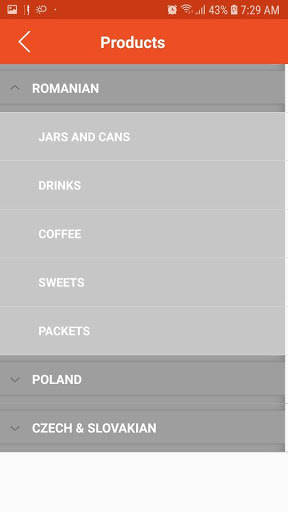 Sweets, Packets, tea, pasta, desserts, snacks, meat about the Romania, Czech, Slovakian, Poland Countries..