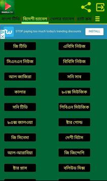 Drama or Bangla natok bangla movies and bangla songs. Catch live Bangla news of Bangladesh and worldwide. Get latest news of Bangladesh crickets on sports news program. You may also try our other applications named as 1 bangla newspaper 2 bangla keyboard 3 bangla jokes 4 bangla poem 5 bangla kobita 6 bangla sms 7 bangla radio 8 bangla waz 9 bangla song. Thank you very much for downloading this application. Enjoy watching Bangla Tv live.