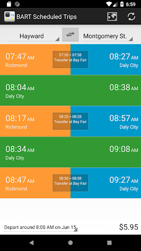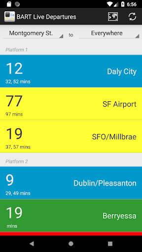 Displays information and live updates about BART transit system in the San Francisco Bay Area. Automatically opens to real-time departures from the nearest BART station. Just select a destination to see scheduled trains with transfer information, fare amount, and arrival times. There's also a system map thats available offline.