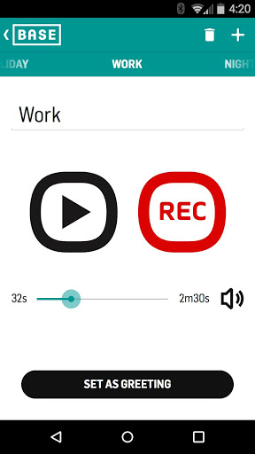 • The reception of your voicemail messages via this VVM app is charged following your data tariff plan if you’re connected to the BASE Company network (for example: 1 minute voicemail message represents about 100kb of data usage).