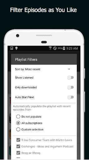 ✓ Filter episodes: Build up your own customized playlist for different scenes and moods