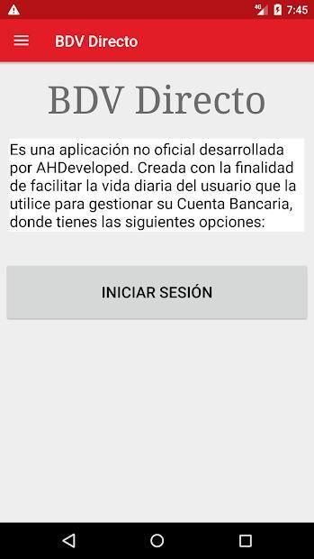Esta App no es del BDV, y se creo para uso personal. Por lo tanto AHDeveloped no tiene nada que ver con esa Institución Bancaria, si con la gestión de sus productos.