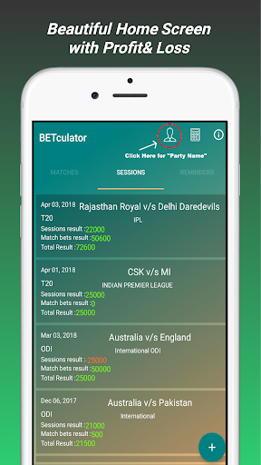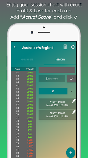 • Accurately calculate your cricket session outcome on every run as shown in the screenshot