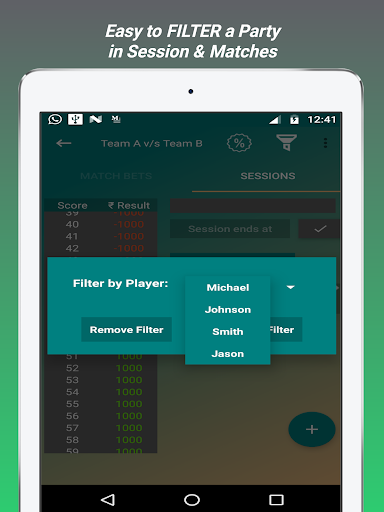Improved performance and lesser bugs Match and Player polls Live Chats. A whole new Player ratio bet and tutorial. Filter via teams, date, result, format. Party/Player names support with commission. Set Commission ON/OFF for each match separately. News Feeds and Live match feeds added. Pre-Match facts and key players in major matches. Upcoming matches schedule with auto book. Tutorial Videos describing the working of app.