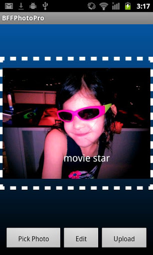 facebook Photos on your Phone. View, edit, upload and save photos.Everything you want to do with Facebook Photos.Including photo uploads and tagging photos.Ready for Halloween.Use special effects to create and upload GHOSTLY PHOTOSChoose Upload, pick photo, and edit.Choose EFFECTS and Negative.Save your result and upload to Facebook.This version has ads.Now includes photo editing.You can add effects and text to your photos before uploading.Check the video demo.Feature List: Take amp; upload photos Edit Photod Create Albums on the fly Tag a Photo immediately after upload Browse Your Albums See Tagged Photos of You View Friends39; Albums View Your Facebook Page Photos Save Photos to the phone Upload videosThis version includes a number of performance improvements, but photo files are large and the initial download of albums with many photos may seem like it taking a long time. Wifi and good internet connections helpThings will be faster after the first download of photos.The best place for updates, support, and other info is our app Facebook page at http:www.facebook.comBFFPhotoIt is not possible to respond to market comments, so posting on the Facebook page is a good option to report problems or issues.You may also notice a few people saying how much they love this app.You can also email help@bffmedia.comBFF Android, BffPhoto, Bff Photo, Bff Photo Pro