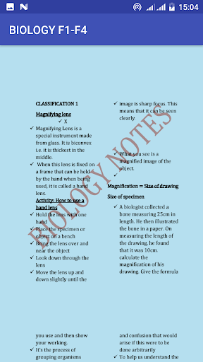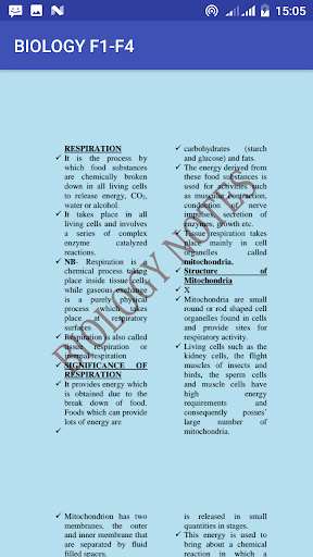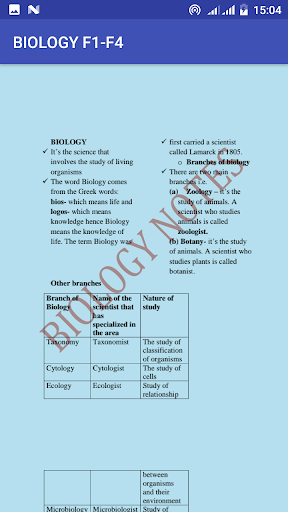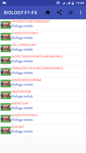 The application covers form one to form four biology notes.All the topics are covered comprehensively.