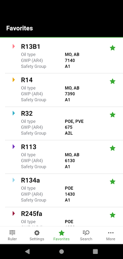 The BITZER REFRIGERANT RULER enables easy and fast determination of refrigerant data. The app contains all common refrigerants, including key fluid properties, safety group information, global warming potential (GWP), ozone depletion potential (ODP), and information on choice of oil type for the compressor. Furthermore, additional information on refrigerants, links to relevant online documents and other information are displayed (under "More..." in the menu bar). The tool provides an intuitive user interface for easy and accurate temperature-to-pressure conversion, while allowing easy use and switching between different metric (SI) and imperial (IP) units (under "Settings").