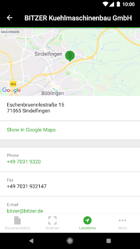 The convenient site directory is also really helpful: the app knows the addresses and contact details of all BITZER and Green Point service points as well as of all certified dealers and other distributors. Users can place a call directly from the app, can write an email and add the data to their address book. If the user has activated the location function, the app will sort the site information by subject groups and by the site’s distance from the user. The route-planning function will then show the shortest way to the required destination. Alternatively, customers can also manually access the contact details of the BITZER and Green Point sites as well as of the partners.