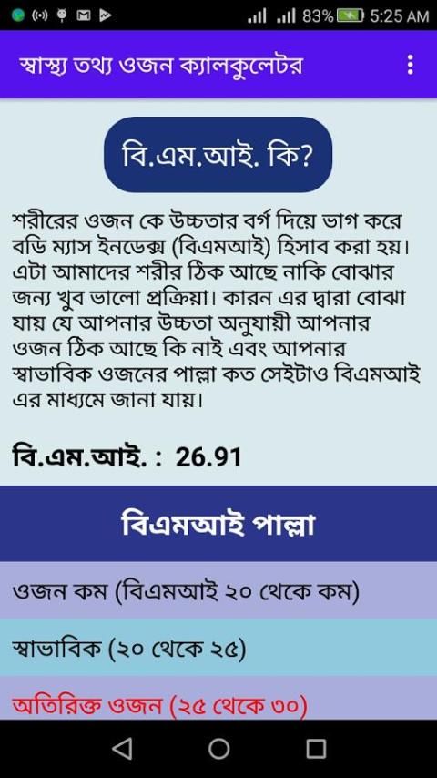 Health Solution bangla app will give you advice by calculating your body mass index.