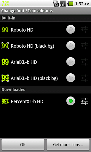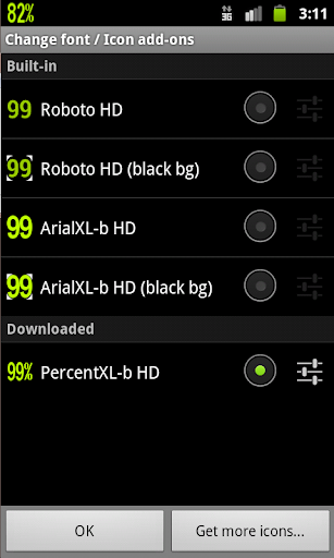 For Android 3.x/4.x users who wish to have the brightest colors possible on their dimmed status bars, look for our HD add-ons with “b” after the font name. Download HD add-ons within Battery Notifier Pro BT or search for "bnbt" in your browser at Google Play.