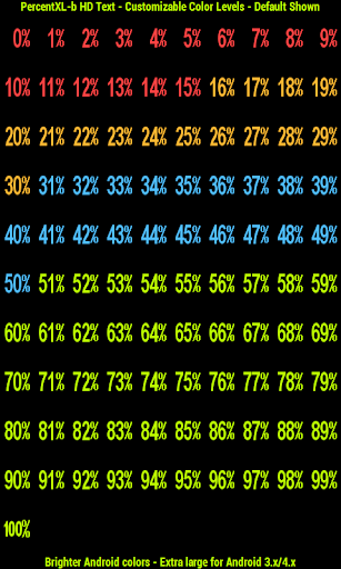 HD addons have 50% higher resolution than standard fonts. For users with high density screens (most users) who want the largest font we offer in official Android colors which includes the percent sign.