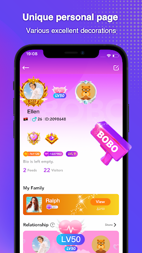 BoBo is the most fun and free group voice chat and text chat app for chatting and dating to expand your social circle. It allows you to live stream your special moments, watch the most popular videos, play casual games with friends, and even share your voice to make new friends.