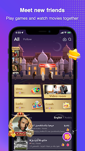 You can random voice chat online with people anytime using mobile data or WIFI with us, meet the person you like. You can also invite friends from live stream applications or other live chat programs, such as Bigo Live, Tik Tok, Fella, Forfan, Sugo, Tango, Star Chat, Wafa, Hakuna, Weplay, Yalla, Miku, Likee,Halame,TalkTalk, Sawa Ksa, YoHo, SoulChill, YOYO, Hiya, Ahlan, Hawa, BeeLive, Beela Chat, Uplive, Chamet, Hello Yo.