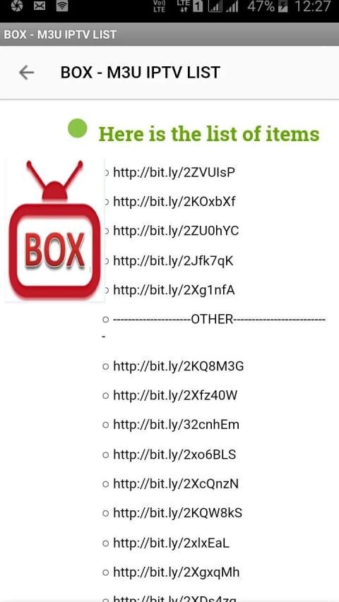 9Apps is your first choice to download apps. 20,000+ users downloaded BOX - M3U IPTV LIST latest version on 9Apps for free every week! And it was enormous fun This hot app was released on 2019-07-05. Here are some guides of this app: