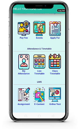 The App will enable the student to view the status of their attendance, allotted assignment and submission of them online, Payment dues, history and pay online .They can also take online test and search books in a library and reserve the books in advance.