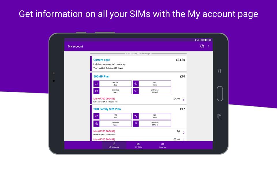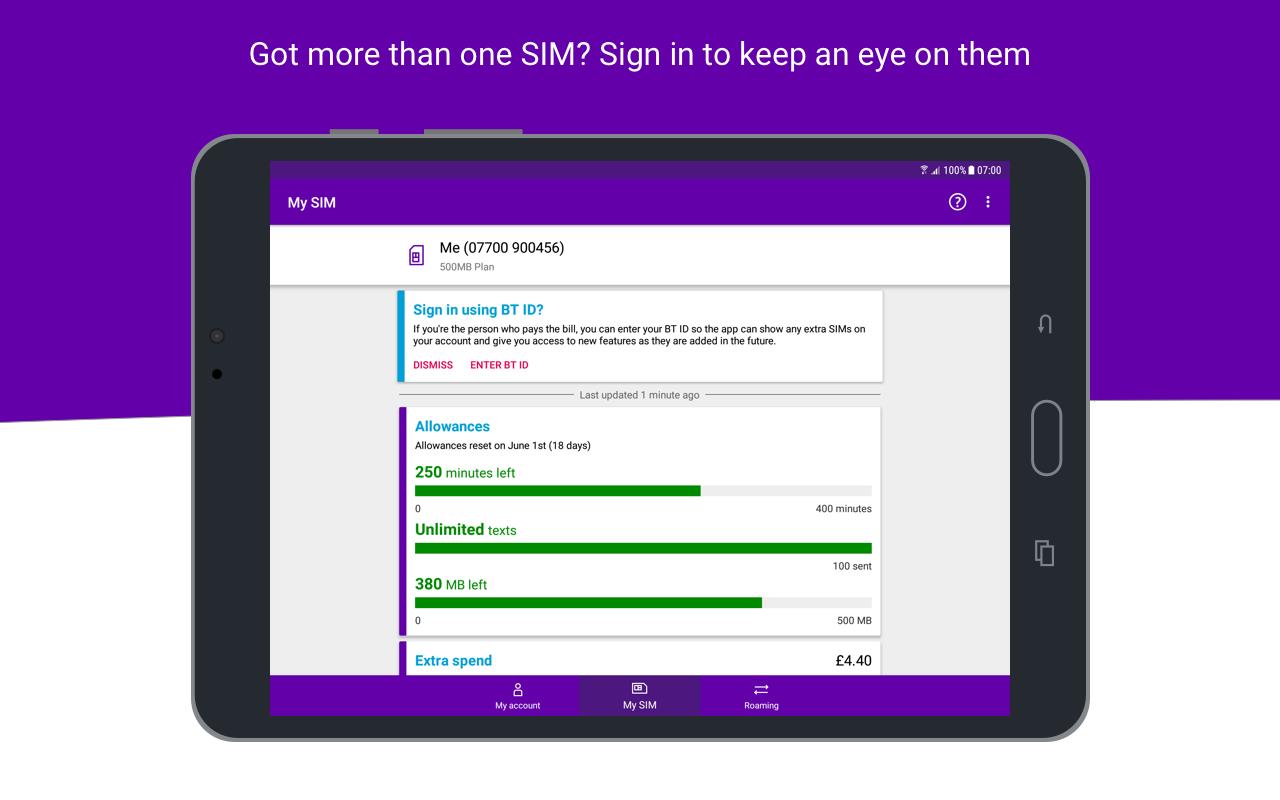 Note: This app is NOT compatible with SIMs from other mobile providers, including BT Business and EE.