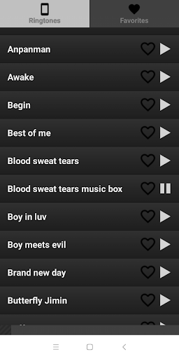 The app contents a large collection of bts songs, greatest hits such as: Airplane, Am I wrong, Anpanman , Awake, Boy in luv, Dimple marimba, Dna, Epiphany, Fake love, Idol and more...