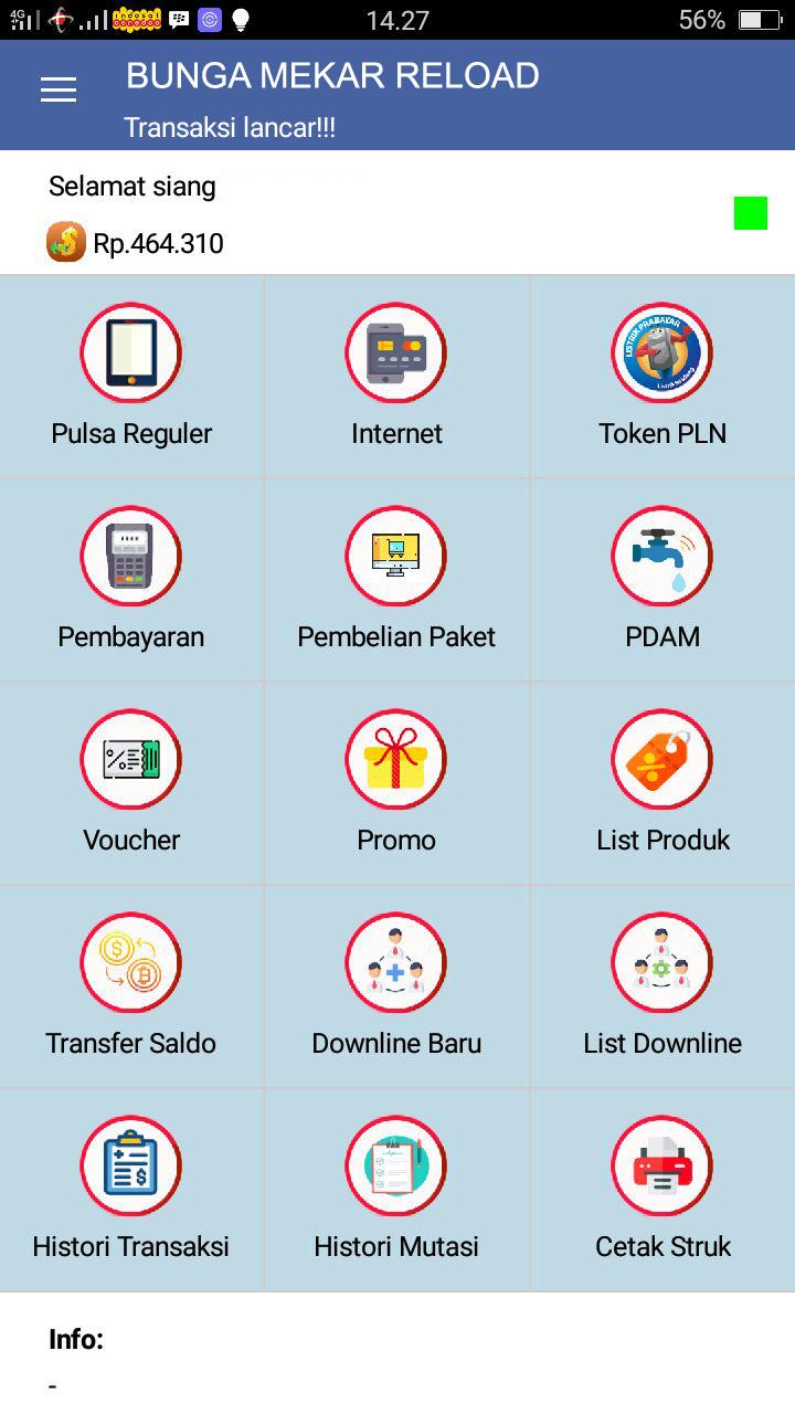 Aplikasi android BungaMekarReload adalah aplikasi mobile gratis untuk member-member setia BungaMekarReload di mana pun berada. Aplikasi ini memudahkan Anda dalam melakukan berbagai transaksi seperti pengisian pulsa, pembelian token listrik, pembayaran tagihan pasca bayar, dll.