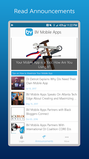 Current BV Mobile Apps clients can use this app to manage their content, receive announcements, and interact with support.
