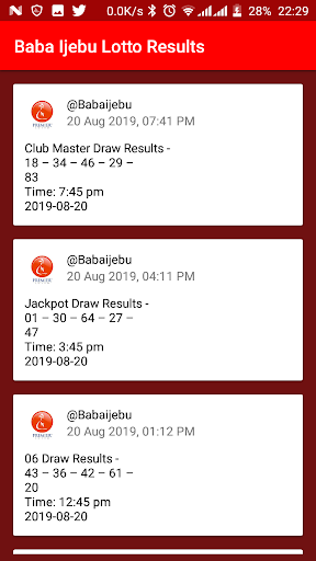 Download this Baba naija Lotto Results app for free in 2020. With this android app, you can check baba naija results for today and past results all the way back from 2000 to 2019.