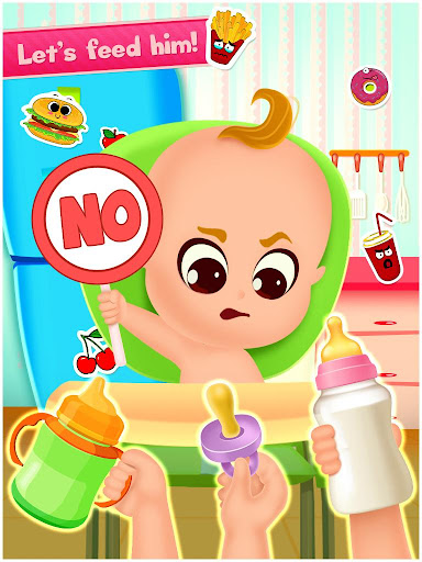 Little one is so hungry. Lets feed him with a bottle of milk, healthy cereals, yummy ice creams and some fresh fruits.