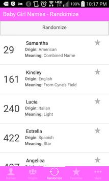 * Undecided? Use the "Randomize" feature to show a random list of 5 girl names