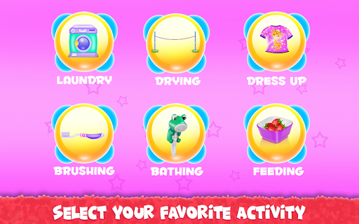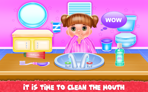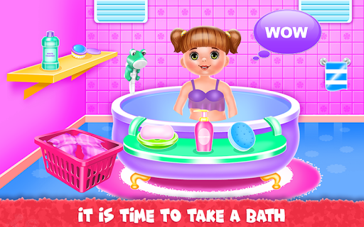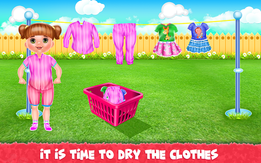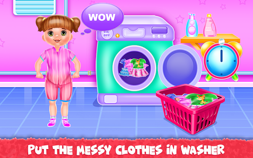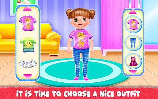 It's time for you to play the parent role and this baby game is just the perfect occasion to learn how to take care of a little girl. Kara is your responsibility and you going through some fun activities with her to see how a normal day is for a busy mom. You will start with brushing her teeth because we would like to keep them cleaned and healthy. Put on the toothpaste and brush them well. Get done with the first level of this girl game and move to the following ones. Now, you will go into the bathing part to make sure the girl is clean and all washed out. Use the shampoo to wash her hair then clean the body and rub it until it's all covered in foam. Clean her and then get her out to be ready to complete the other chores. Next comes the laundry phase and this is where you will be getting the dirty clothes and place them in the washing machine. Add detergent and conditioner and wait until they are cleaned. Get them out to be dried and continue with the rest of the game. All that remains is to dress her up in a sweet outfit with cute playful accessories. Go crazy and add unique colors that will match her energic personality and when this step is over you will go to the kitchen where the girl is going to be fed. Delicious plates are waiting for her and you will have to fulfill her desires when she asks for a certain type of food. Either she wants strawberries or juice or a sandwich you have to offer it and make her happy.