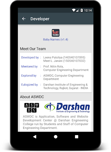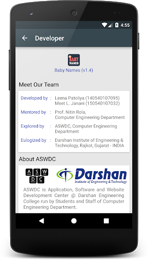 This App is developed at ASWDC by Leena Patoliya (140540107095) and Meet Janani (150540107032), a 7th Sem CE Student. ASWDC is Apps, Software, and Website Development Center @ Darshan Institute of Engineering & Technology, Rajkot run by Students & Staff of Computer Engineering Department