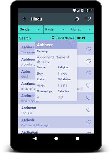 Baby name is an app that helps you find Name/Zodiac/Rashi letters for the newborn child in your family. The app has very simple UI, and it is very easy to use with a-z baby names list. The search box is provided to help you search for the name starting with a particular letter. You can also find names starting with your favorite letters. You can select from a baby boy name or a baby girl name to start searching. Name meaning with Syllable, Numerology, and Zodiac is shown here in an interactive way. Using this app, selecting a name for the child has never been so easy.