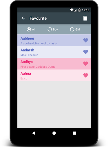 Easy to find name for baby girl and boy for any region. Various filter available to get name for religion from topbar, also for just boy or girl name, you can select multiple name as favorite and later on check your favorite list of names. Smooth work on Android pie (V9.1). Thanks Aswdc Developer Team